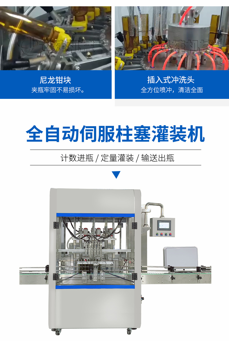 1、该灌装机可完成不同瓶型的自动定量、自动灌装、自动出瓶,专业灌装各种液体及粘流体,采用防滴漏与拉丝的灌装闷头、防高泡产品的灌装升降系统、确保瓶口定位的定位系统和液位控制系统;