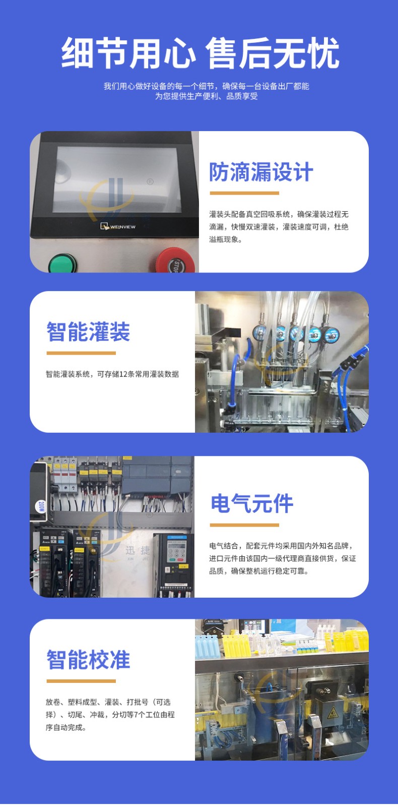 易折试剂管成型灌装机广泛使用于护理液、口服液、洗眼液、营养液、香水、食用油、润滑油、化工及特殊行业的液体灌装。