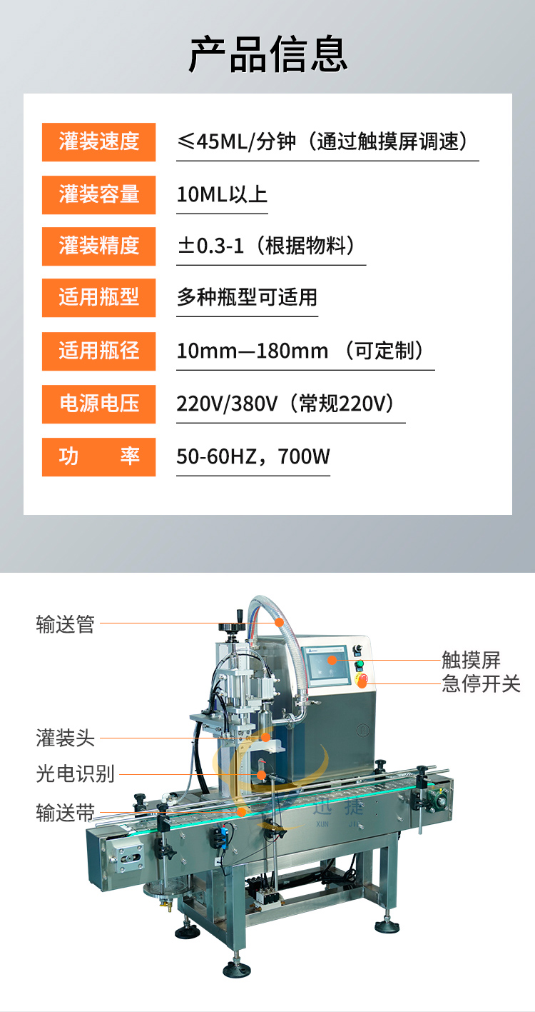 单、灌装准确、维护方便等特点。该设备整机304不锈钢制作,与物料接触面均为食品级材质。料箱可配