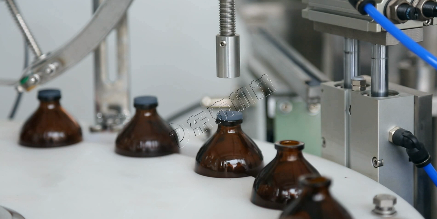 分装机是包装机中的一小类产品,分装机在食品行业、饮料行业、日化行业等广泛使用。液体分装机是由灌装、上内塞、压内塞、上外盖、旋外盖、PLC控制等主要部分组成。本机通过凸轮传动,定位准确,传动平稳,PLC自动控制灌装、压内塞、旋盖等全过程。此液体分装机适合于眼药水、碘酒、西林瓶等大中剂量制剂的分装生产。