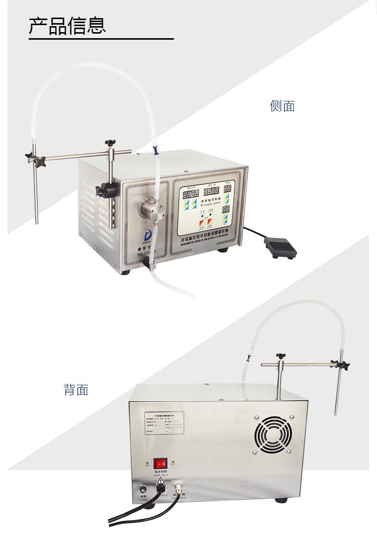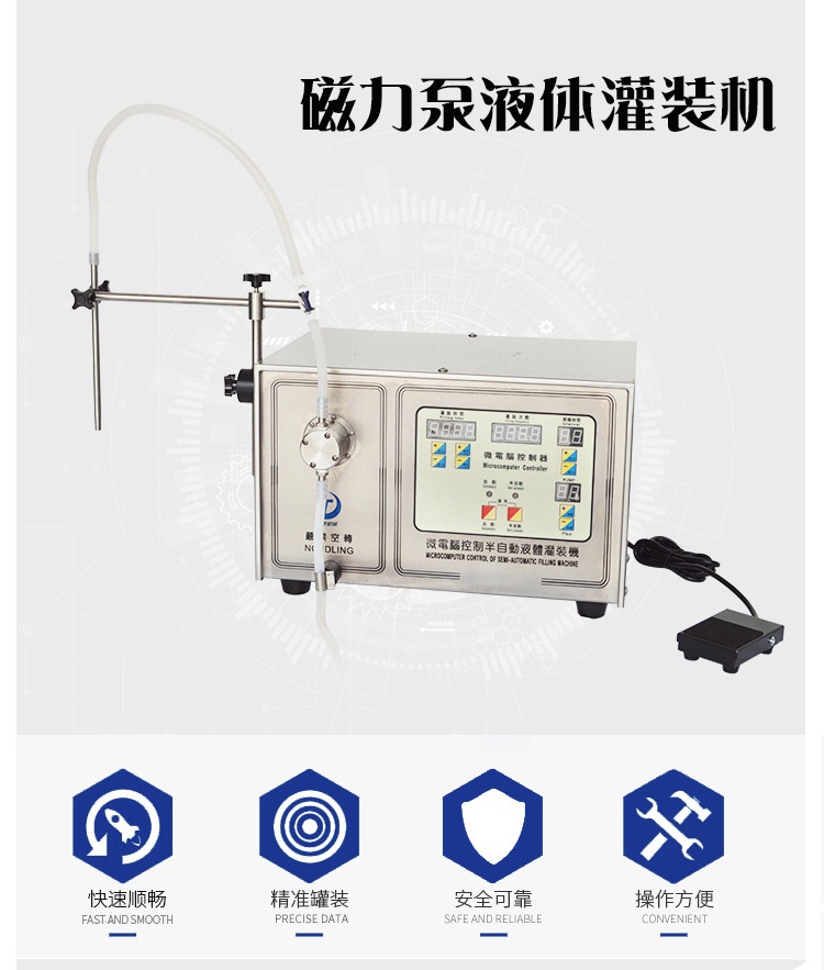 可灌充绝大类型的液体,包括高粘稠度的液体。如:各种药剂、化学品、油类、化妆品、食品等无颗粒状液体;灌装精度高,适合实验室用。